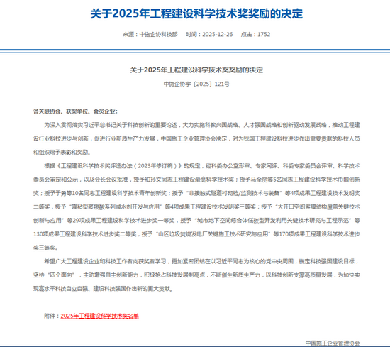 水电九局一技术成果获2025年工程建设科学技术奖 |