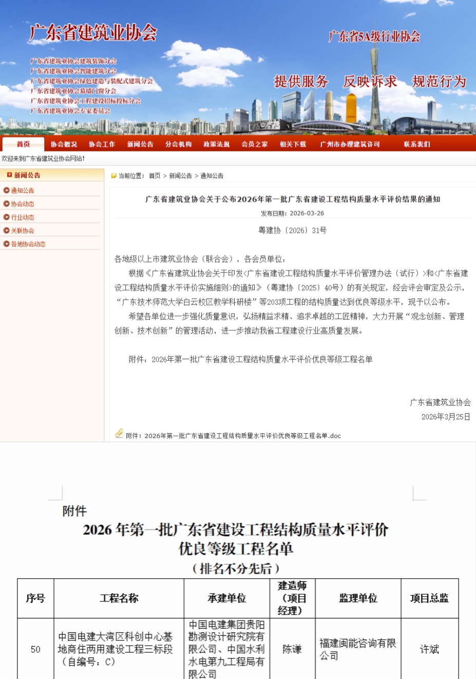 近日,广东省建筑业协会正式公布《2026年第一批广东省建设工程结构质量水平评价优良等级工程名单》,由水电九局承建的广州大湾区科创中心基地三标段项目,凭借过硬的工程质量、规范的施工管理,成功获评广东省建设工程结构质量水平评价优良等级工程。 该项目位于广州市花都区迎宾大道,涵盖了高端商品住宅、甲级写字楼办公产品及精品商业MALL,项目总占地91亩,规划总建筑面积约27.8万平方米。由水电九局承建的三标段工程正是项目关键核心的162.1米超高层甲级写字楼——中国电建大湾区总部“科创中心”,也是未来中国电建在南方区域的新门户。自项目开工建设以来,水电九局严格落实广东省建设工程结构质量水平评价管理办法要求,以高标准、严要求贯穿项目全周期建设。项目团队聚焦结构质量核心,强化全过程质量管控,从图纸深化、材料进场、工序施工到验收交付,建立全链条质量追溯体系,严格执行技术交底、样板引路、过程巡检等制度,全力攻克施工难点,保障主体结构安全可靠、质量达标,用匠心打造精品工程,最终顺利通过协会评审公示,斩获省级优良等级工程荣誉。 此次获评广东省建设工程结构质量水平评价优良等级工程,是行业对水电九局工程建设质量与管理水平的高度认可,进一步提升了水电九局在粤港澳大湾区市场的履约能力与品牌影响力。 下一步,水电九局将以此次获奖为契机,大力弘扬工匠精神,以“观念创新、管理创新、技术创新”为驱动,不断提升工程建设品质,打造更多优质标杆工程,为推动区域发展贡献央企力量。 |