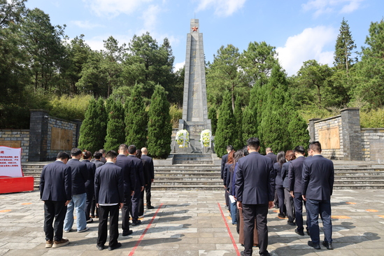3月30日,水电九局六公司机关党支部、团支部前往贵阳市乌当区百宜红军烈士陵园,开展“清明祭英烈·精神永传承”主题党(团)日活动,以实际行动缅怀革命先烈,传承长征精神。 活动现场庄严肃穆,青松翠柏环绕,烈士纪念碑巍然矗立。在红军烈士纪念碑前,公司党(团)员代表整齐列队,开展庄重的缅怀仪式。大家依次向革命先烈敬献花篮,整理花篮缎带,随后全体人员肃立默哀三分钟,深切缅怀革命先烈的丰功伟绩,寄托对先烈的无限哀思。默哀结束后,全体党员面向党旗庄严重温入党誓词,铿锵有力的誓言回荡在陵园上空,彰显着新时代党员传承红色基因、续写奋斗篇章的坚定决心,随后,全体人员向烈士三鞠躬,表达对革命先烈的深切缅怀和崇高敬意。 仪式结束后,大家先后瞻仰了19名烈士墓,走进百宜红军烈士陵园陈列馆参观学习。陈列馆内展陈分为陵园沿革、长征背景、红军长征过乌当、军民鱼水情和红色革命事件五个部分,充分展现了革命战士为国家独立、民族解放勇于牺牲、无私奉献的革命精神和军民同心的深厚情谊。 此次主题党(团)日活动,既是一次深刻的爱国主义教育,也是传承红色基因的精神洗礼。通过追寻革命足迹、缅怀革命先烈,大家进一步坚定了理想信念,增强了责任感和使命感,纷纷表示将以更加饱满的热情投身企业高质量发展实践,奋力走好新时代的长征路。 |