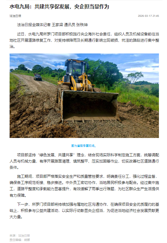 法治日报:水电九局:共建共享促发展,央企担当显作为 |